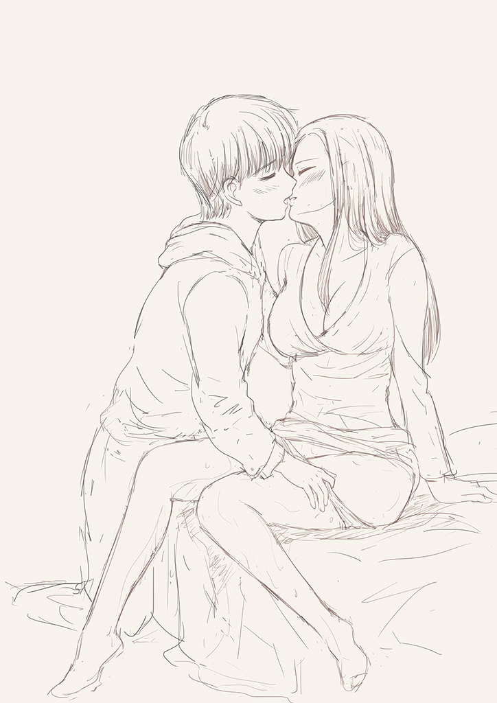 弟のベッドでの続き como (2026年3月25日 15:11) | コメント(2) | イラスト なんとなく前の絵の続きを描き始めたけど、ただのいちゃいちゃしてる絵になっちゃったのでボツに。 雑なラフ絵です。